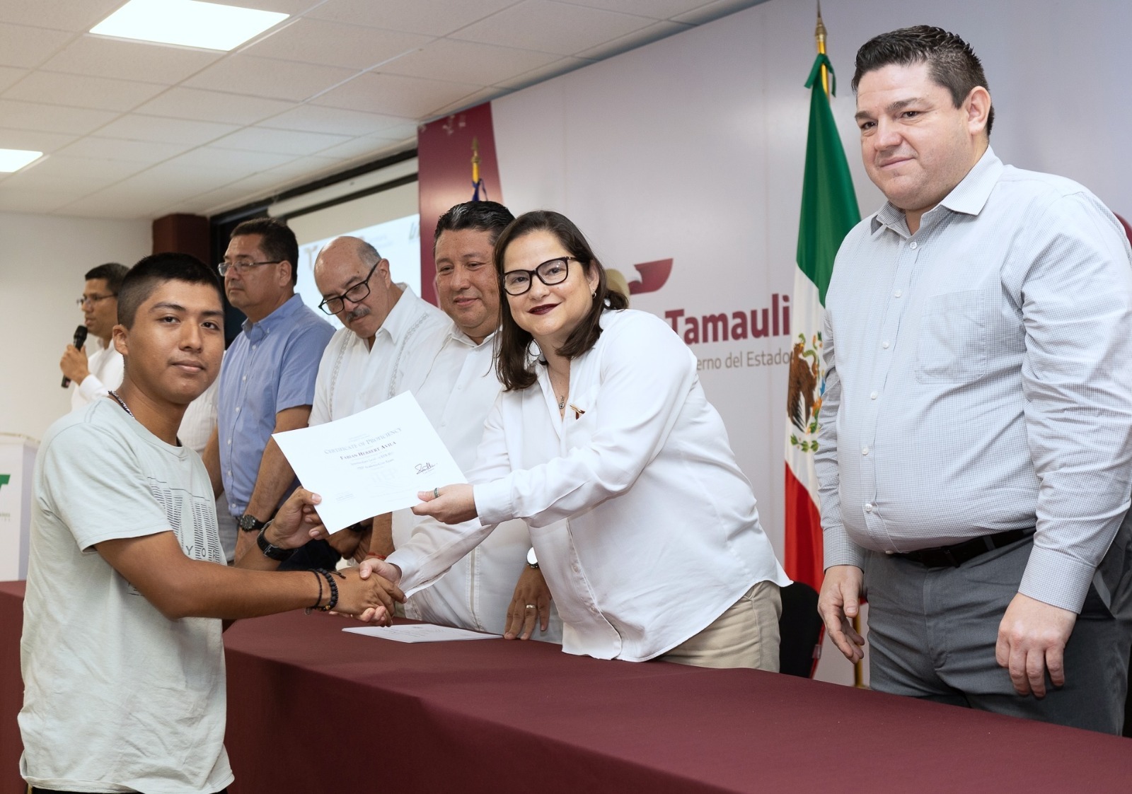 Durante la ceremonia de entrega de certificados, la secretaria de Educación de Tamaulipas, Lucía Aimé Castillo Pastor, mencionó que en la actualidad el inglés es una herramienta fundamental para el éxito laboral, por lo que al certificarse en este idioma, las y los universitarios han dado un paso firme para su desarrollo profesional.
