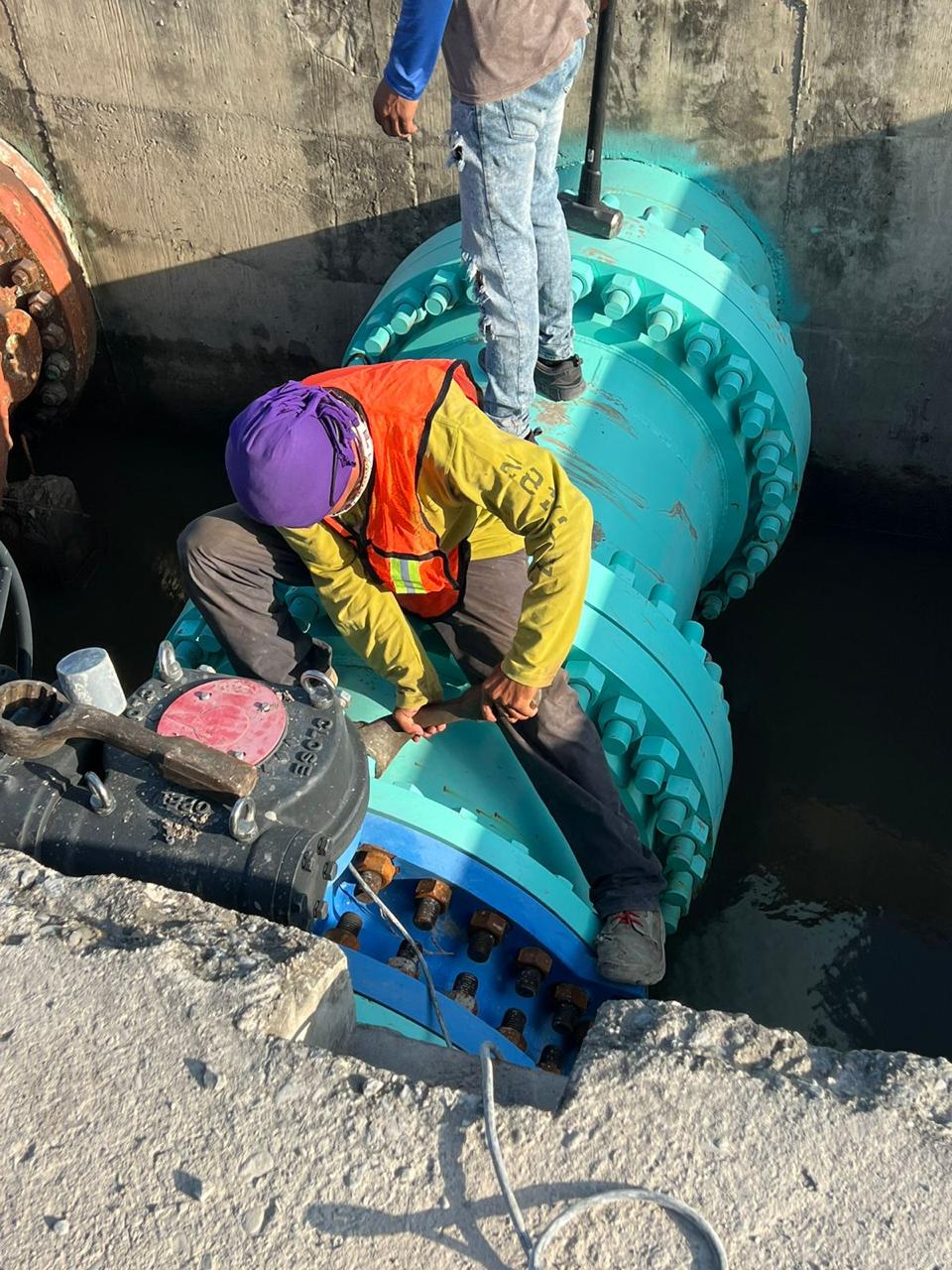 Actualmente, se han concluido los trabajos en las plantas de rebombeo 1 y 2, donde se realizó el retiro y colocación de válvulas de 12, 20 y 36 pulgadas, así como tubería de acero. La primera intervención se llevó a cabo el pasado 5 de abril, continuando este viernes 5 y sábado 6 de julio para su culminación. Finalizando los trabajos y restableciendo el suministro del vital líquido en la ciudad capital, este sábado a las 18:05 hrs después de 36 horas de labores ininterrumpidas.