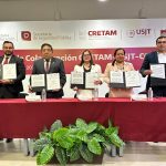 Ciudad Victoria, Tamaulipas.- Rectores de las tres instituciones de nivel superior –CRETAM, COLTAM y USJT-, firmaron un convenio de colaboración en proyectos de investigación científica y educativa, teniendo como testigos de honor a la secretaria de Educación, Lucía Aimé Castillo Pastor y al secretario de Seguridad Pública, Sergio Hernando Chávez García.