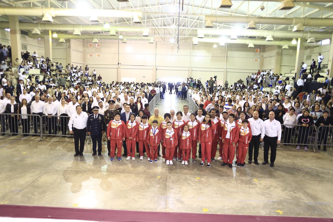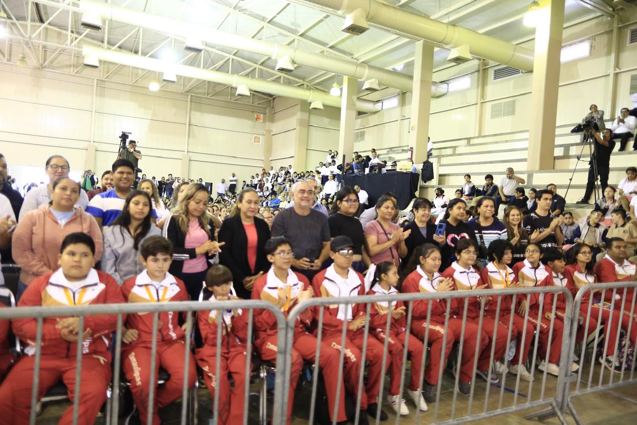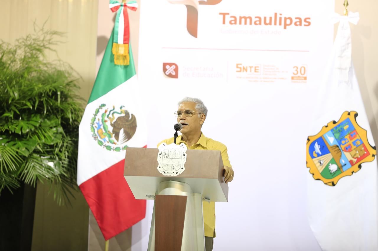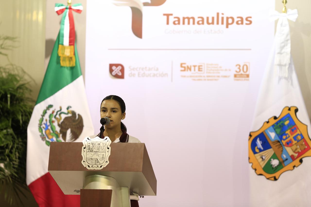 Ante el personal docente, padres de familia y la estructura del sector educativo del estado, y luego de la bienvenida a cargo de Esteban Carrizales Martínez, director de la Secundaria General No. 4, el mandatario hizo un reconocimiento a la delegación de 20 estudiantes, desde 1º de primaria hasta media superior, que representó a Tamaulipas en la Olimpiada Nacional de Matemáticas, en la que ocho alumnos lograron medallas de oro, plata y bronce.