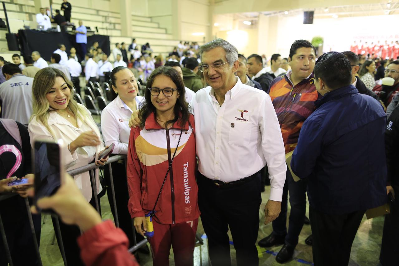 “Estamos haciéndoles valer su derecho a una educación integral y de excelencia. Empápense de conocimiento. El conocimiento transforma nuestras perspectivas de realidad, porque además de ampliar nuestros saberes, permite que comprendamos mejor nuestro propio origen, nuestro tiempo, y el entorno en el que vivimos, palabras de nuestro Gobernador Américo Villarreal Anaya”, dijo.