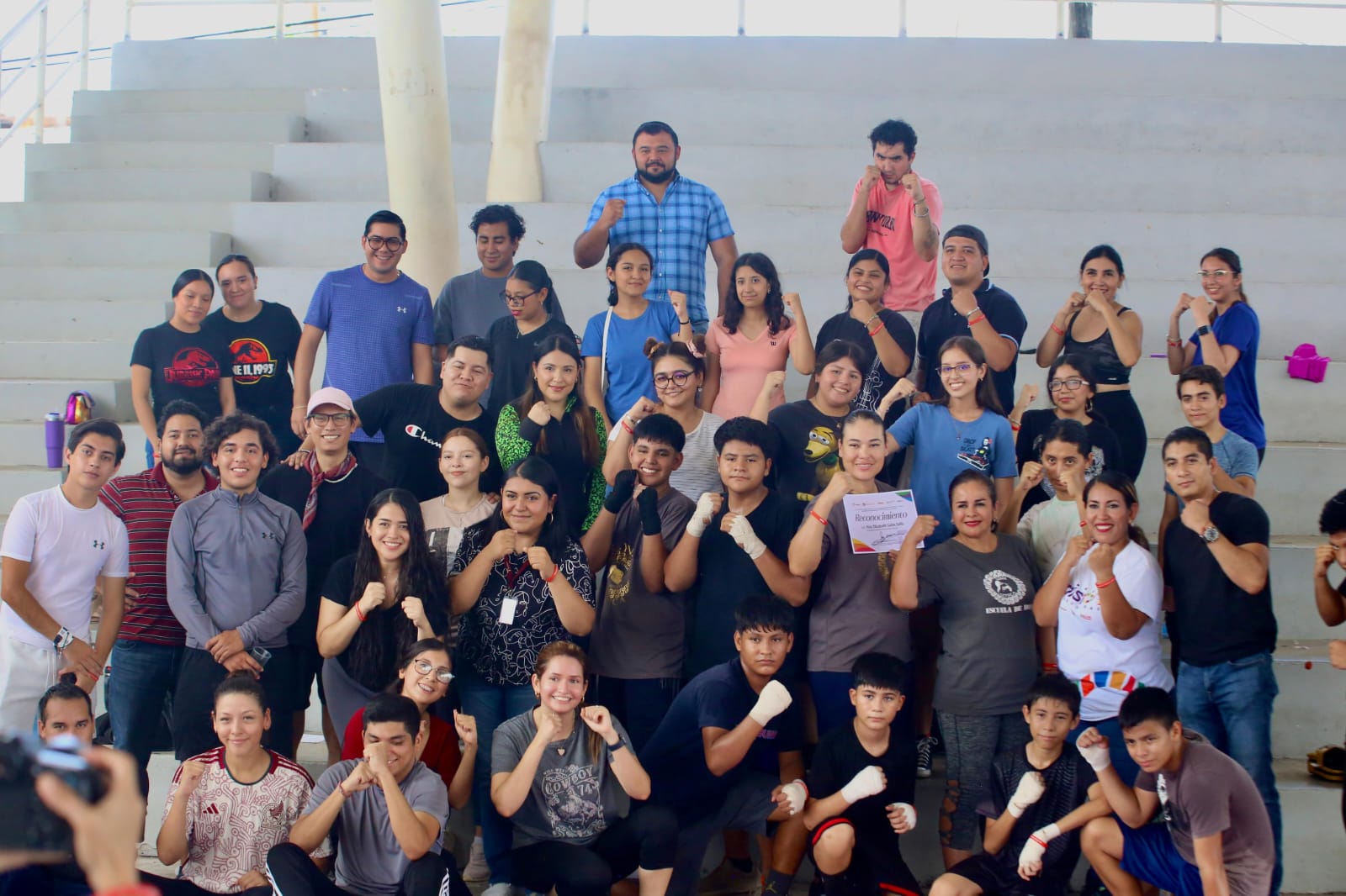 Oscar Azael Rodríguez Perales, encargado de despacho del INJUVE, informó que en respuesta a la convocatoria, un total de 40 participantes tomaron la clase teórica y práctica impartida por la coach Ana Elizabeth Salas Solís, quien es profesional en la materia y miembro de la Academia de Boxeo “Reina Azteca”.