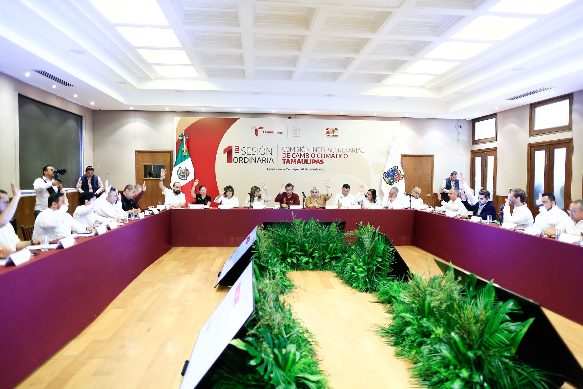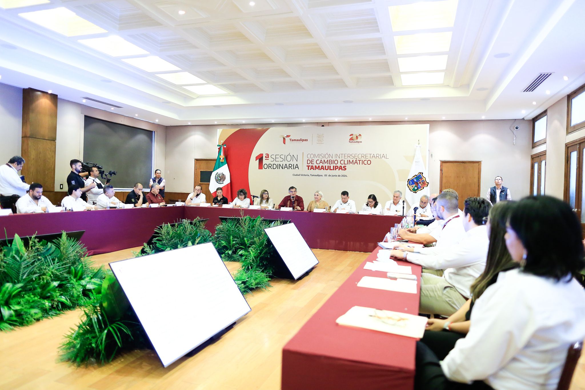 Al presidir la primera sesión ordinaria de la Comisión Intersecretarial del Cambio Climático en Tamaulipas, realizada este miércoles en el Salón Independencia de Palacio de Gobierno, en el marco del Día Mundial del Medio Ambiente, el mandatario tamaulipeco hizo un llamado para reflexionar y tomar conciencia de la importancia del cuidado del medio ambiente para evitar circunstancias catastróficas debido al riesgo que implican en la viabilidad del desarrollo sostenible del estado.