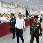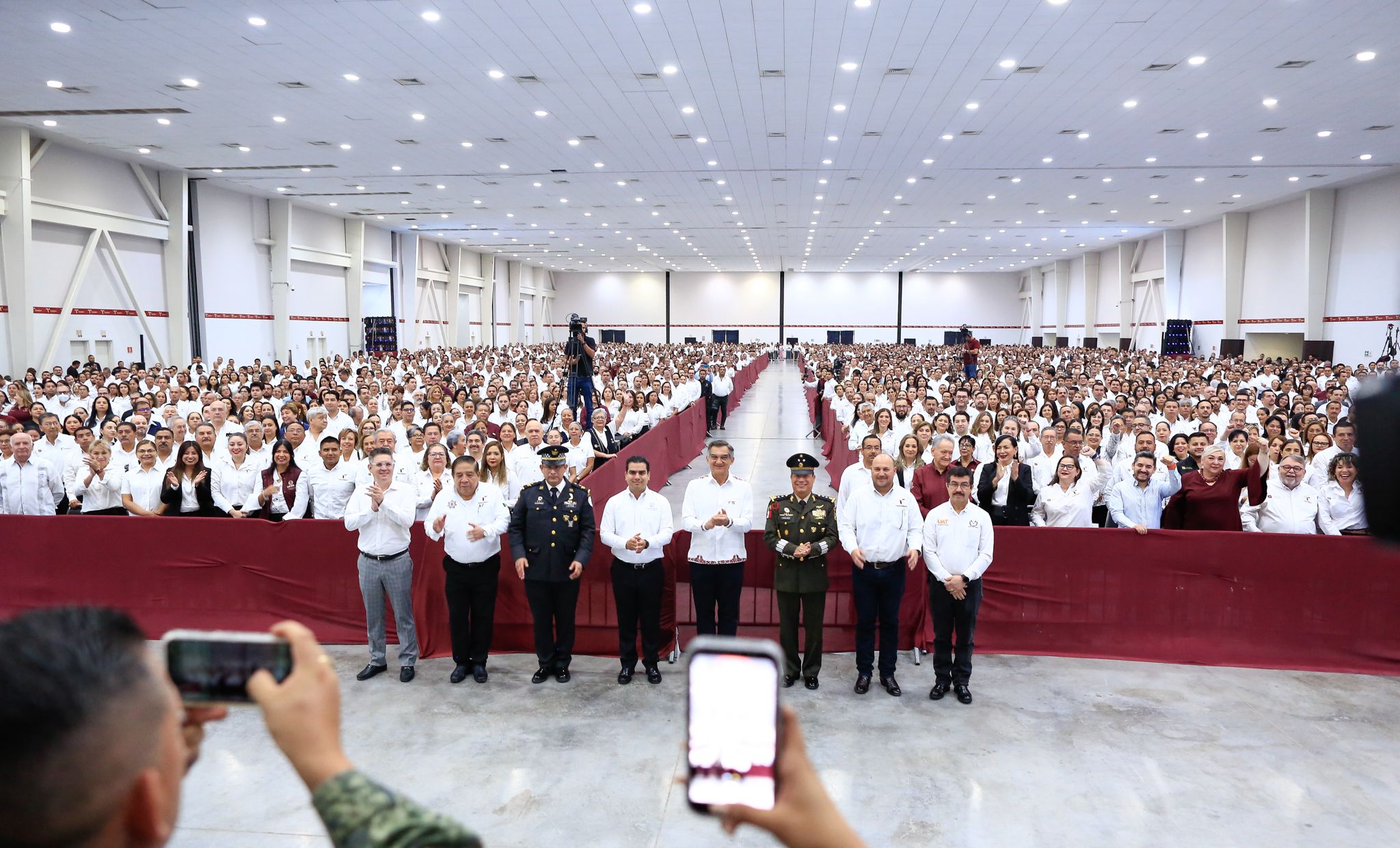 Ante los integrantes del gabinete estatal y la estructura gubernamental en el Polyforum Victoria, informó que la jornada electoral se dio en orden y con civilidad y superó el 57 por ciento de participación, cumpliendo al 100 por ciento la instalación de las mesas de votación.
