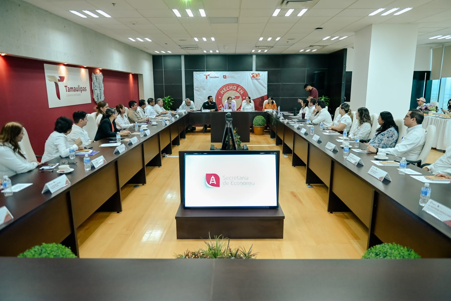 Ciudad Victoria, Tamaulipas. – Los titulares de las secretarías de Economía, del Trabajo, Turismo, Desarrollo Rural y la directora general del DIF estatal acordaron sumar esfuerzos para apoyar a las micro, pequeñas y medianas empresas locales a través de una promoción integral de productos de la marca “Hecho en Tamaulipas” en mercados nacionales e internacionales.