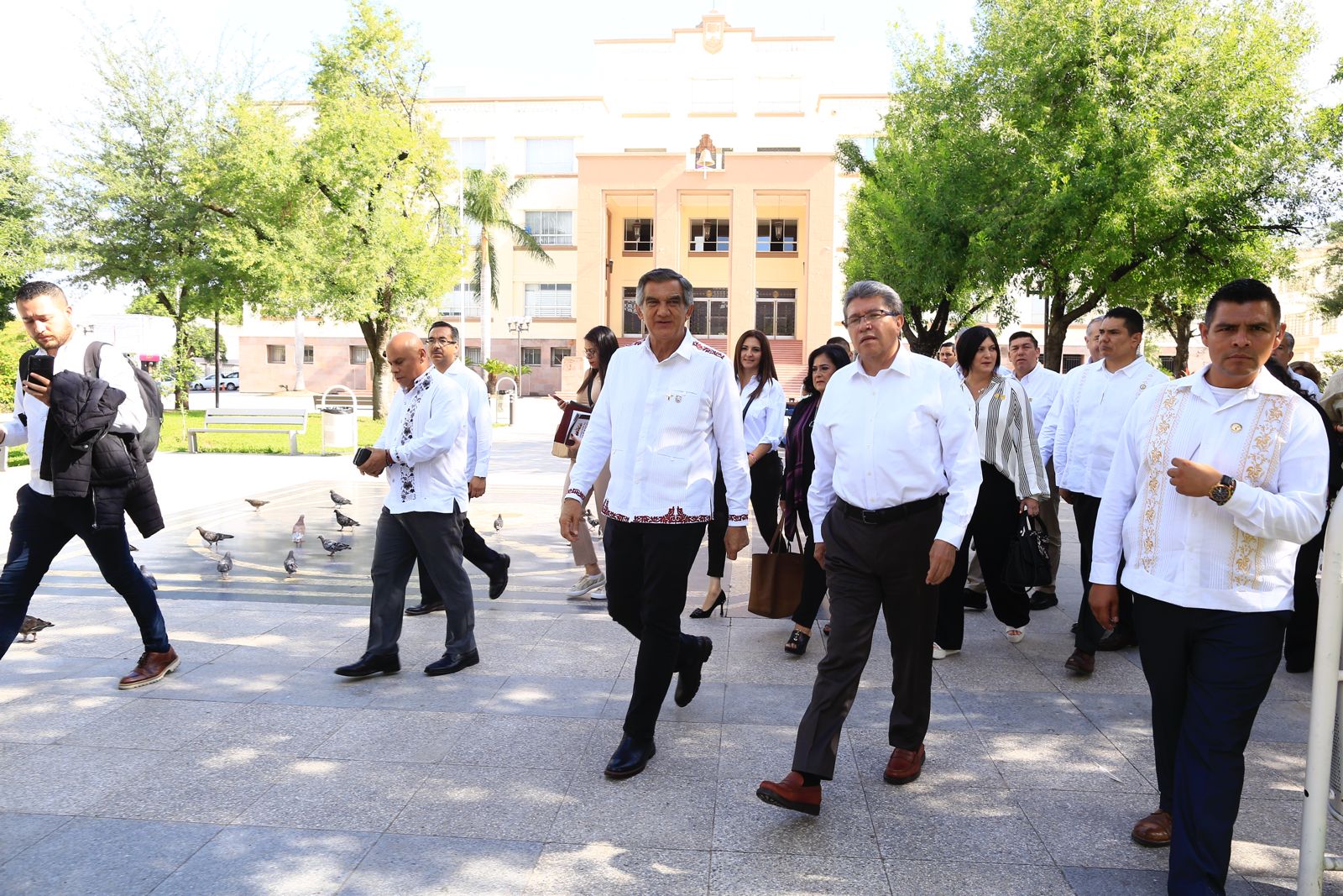 “Estamos muy complacidos, sobre todo, de tener aquí con nosotros al doctor Ricardo Monreal, que siempre ha sido un referente nacional en los cambios legislativos y el trabajo que hizo durante la gestión del presidente López Obrador; y que aún seguimos con ese empeño y esa dedicación de dejar, desde el punto de vista del legislativo, un mejor país con esta visión de transformación”, dijo.